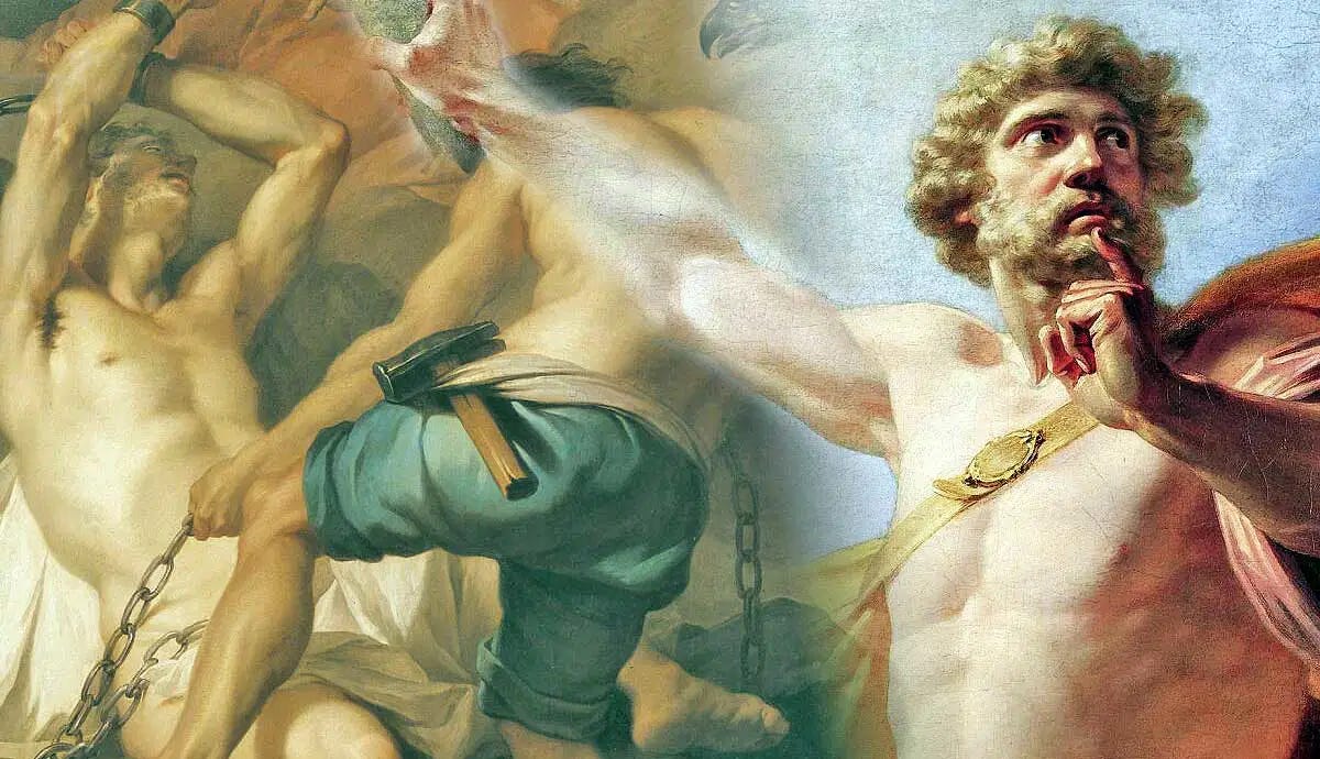 Prometheus, who fought on the side of the gods in the Titanomachy, was sympathetic to humans and decided to deceive Zeus during the dividing up of the carcass of the sacrificial bull at Mekone. Through cunning, he forced Zeus to choose the worst parts — the bones and fat — leaving the meat hidden for the people. For this deception, Zeus deprived humans of fire, which Prometheus later stole and gave to humans, defying the will of the Thunderer.