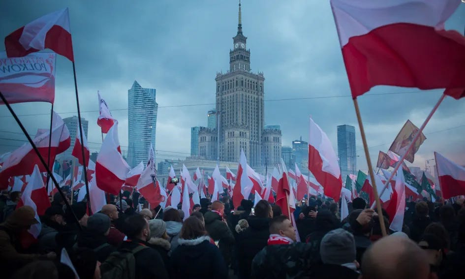Under the slogan “One Nation, Strong Poland”, the march affirmed the resolve of thousands of people to travel from across the country and the continent to take part in its ranks. In an event whose aesthetics can genuinely be called spectacular, the march proceeded with pride and impressive scale despite new regulations (such as a ban on the march’s traditional flare brandishing) and transportation closures (Warsaw Central Station was closed for renovation, widely criticized as a political move fomented by the capital’s liberal mayor). In an unprecedented surprise, Polish President Karol Nawrocki personally attended the march.