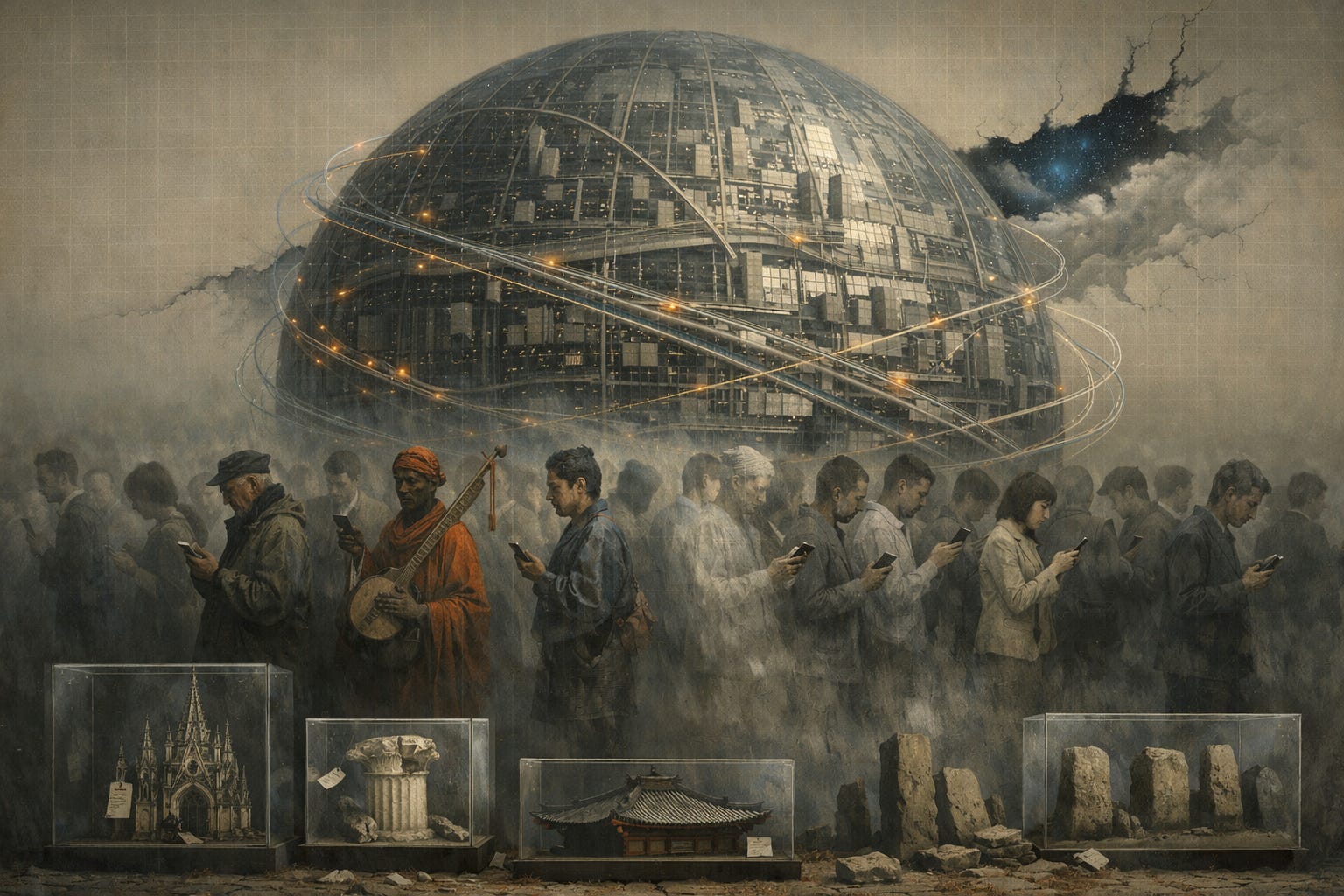 The nightmare that the glacial optimism of liberal technocrats and the naive globalism of the old left attempt to dispel is gradually taking shape: it is the “brave new world.” The alchemy of its tentacular growth is always composed of the same ingredients: supranational techno-economic structures, universalist and egalitarian ideology, and mass world subculture.